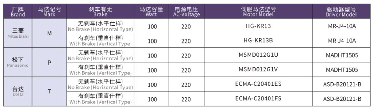 搭配伺服馬達(dá)一覽表