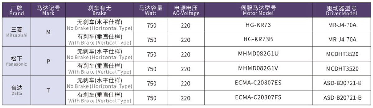 搭配伺服馬達(dá)一覽表