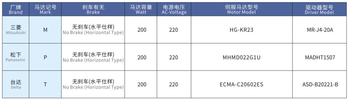 搭配伺服馬達(dá)一覽表