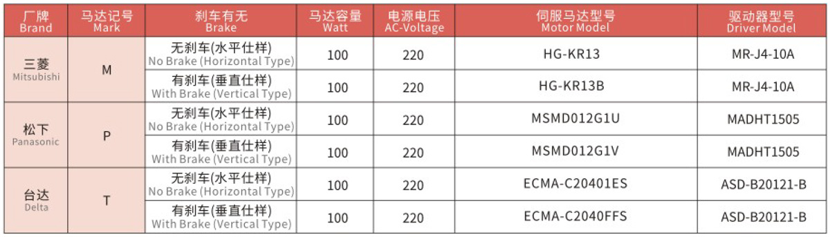 搭配伺服馬達(dá)一覽表