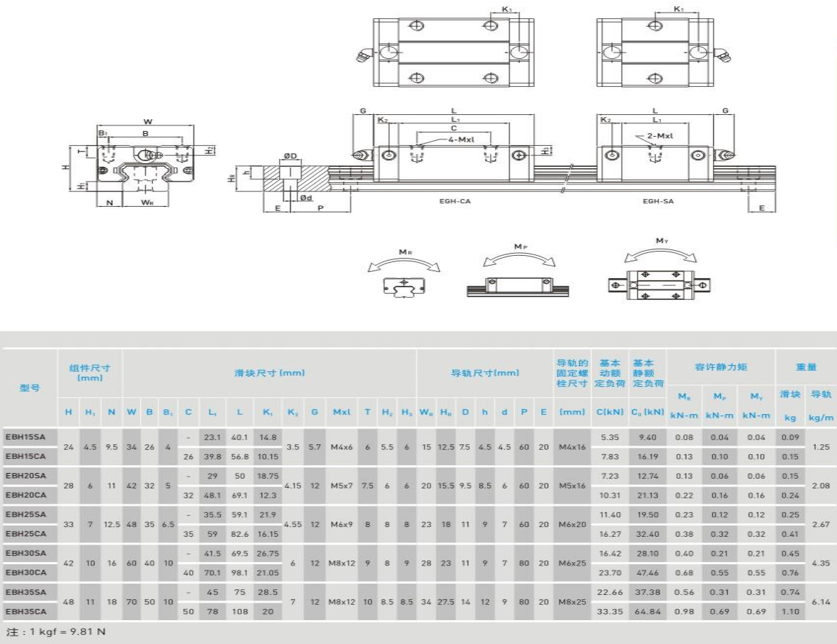 EB系列使用四列鋼珠承受負(fù)荷設(shè)計(jì),使其具備高剛性、高負(fù)荷的特性、同時(shí)具備四方向等負(fù)載特色、及自動(dòng)調(diào)心的功能,可吸收安裝面的裝配誤差,得到高精度的訴求;加上降低組合高度及縮短滑塊長度,非常適合高速自動(dòng)化產(chǎn)業(yè)機(jī)械及空間要求的小型設(shè)備使用?;瑝K上設(shè)有鋼珠保持器以防止鋼珠脫落,此設(shè)計(jì)不僅方便客戶安裝直線導(dǎo)軌,當(dāng)取下滑塊時(shí)亦不會有鋼珠脫落的情形發(fā)生,且在精度允許下具備互換性。